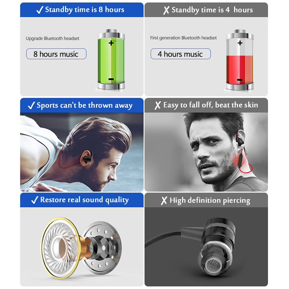 FBYEG Bluetooth Écouteur sans fil casque Bluetooth Sport casque Sweatproof Écouteurs Basse annulation de Bruit Avec Micro Pour téléphone